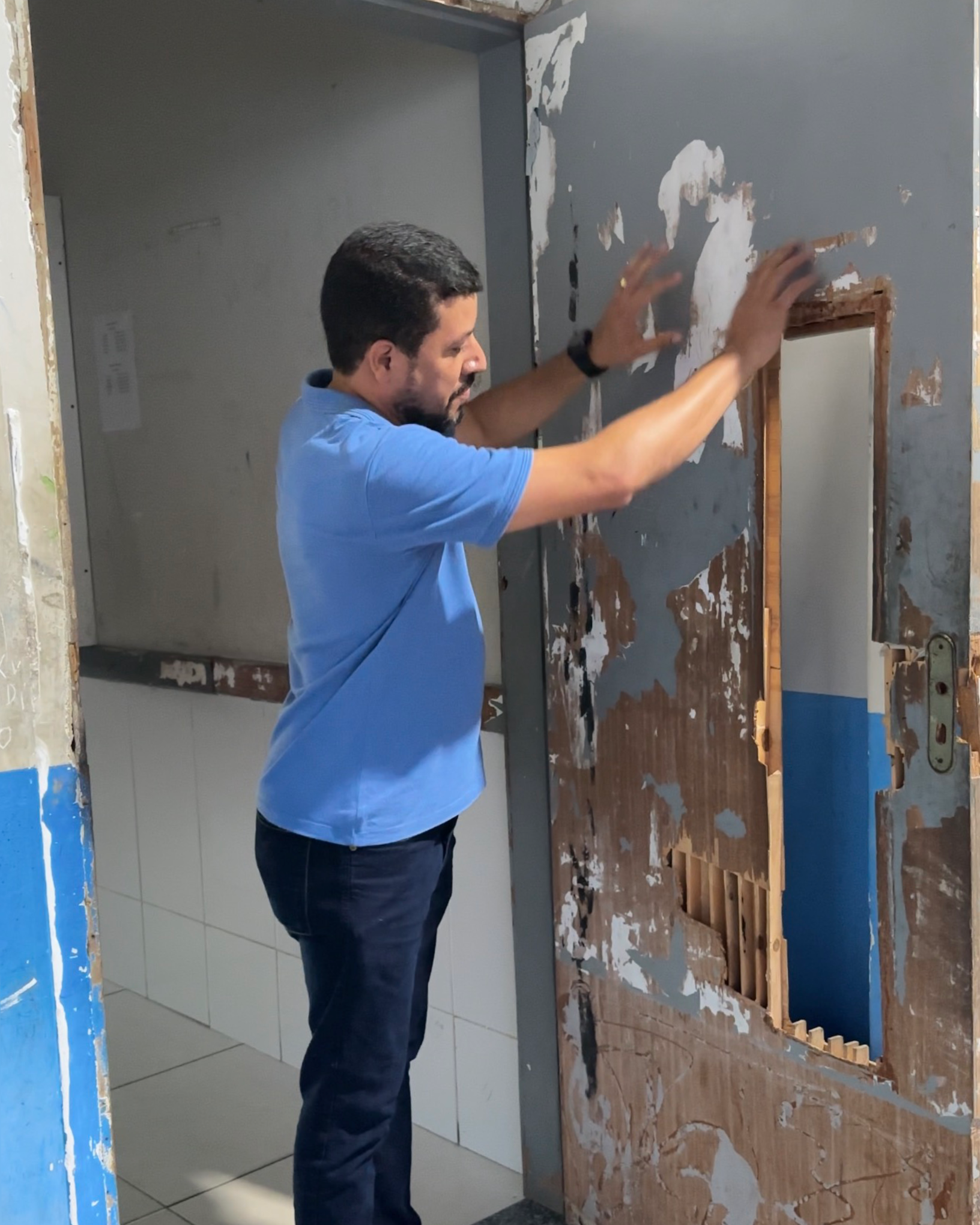 Na visita, o prefeito constatou danos em algumas dependências das unidades, como portas de salas de aula e de banheiros quebradas, resultado de atos de vandalismo que prejudicam o patrimônio público e o funcionamento adequado das escolas.