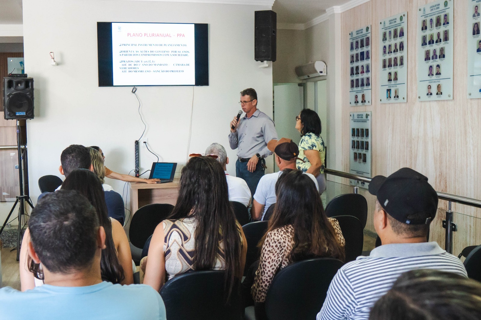 A audiência foi conduzida pelo controlador interno da Prefeitura, Edgar Goulart, e pela consultora contábil Ivani Moreira, que apresentaram os principais eixos do PPA e do anteprojeto da LOA. Durante a exposição, foram detalhadas as metas fiscais, as prioridades de governo e a distribuição dos recursos públicos entre as diversas áreas da gestão, como saúde, educação, infraestrutura, assistência social e agricultura.